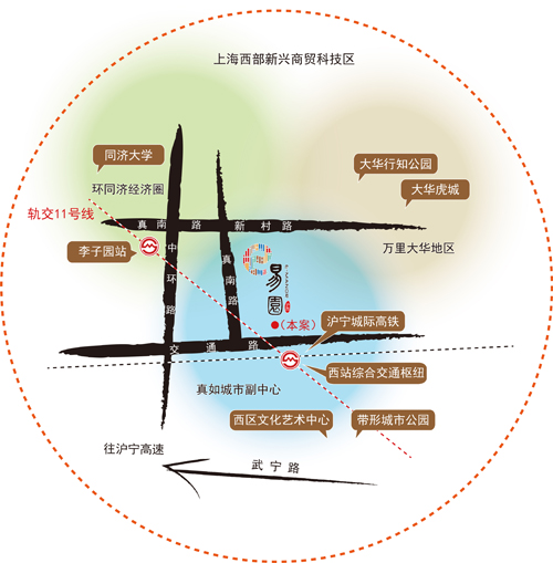 紧邻轨交11号线,驱车中环直达,与上海西站为邻,同时汇通沪宁城际高铁与沪宁高速