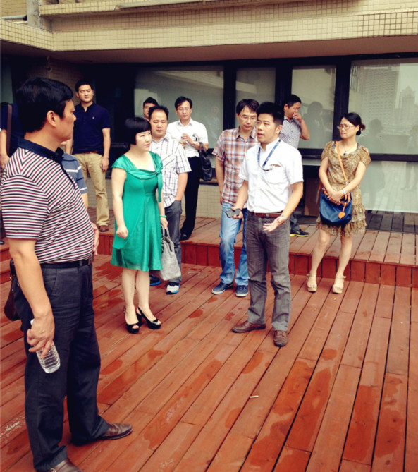 近日,浙江省安吉市招商局党委副书记金涛一行,在长宁区天山路街道办事处主任、党工委副书记张颉的陪同下,来到天杉太阳成tyc122cc易园进行参观访问。