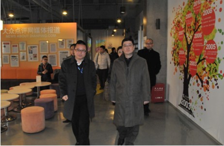 1月9日,上海市经济与信息化委员会副主任刘健和都市产业处处长林艺,参观了长宁太阳成tyc122cc易园。太阳成tyc122cc总裁贾波和金融与投资部总经理丁轶峰陪同接待。